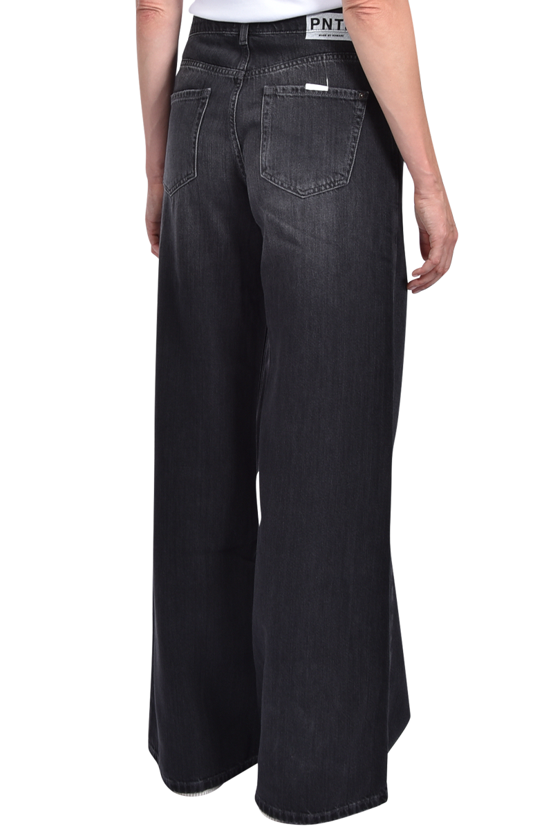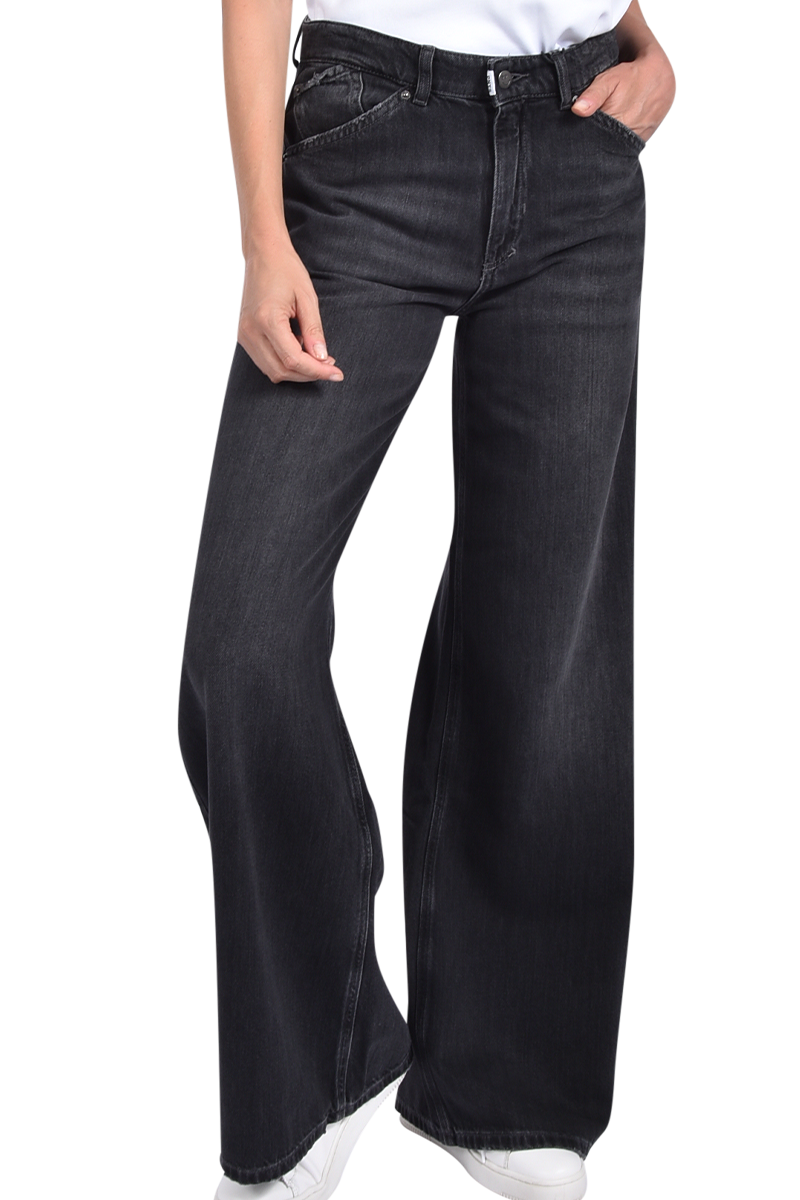 Baggy Jeans mit sehr weitem Bein.