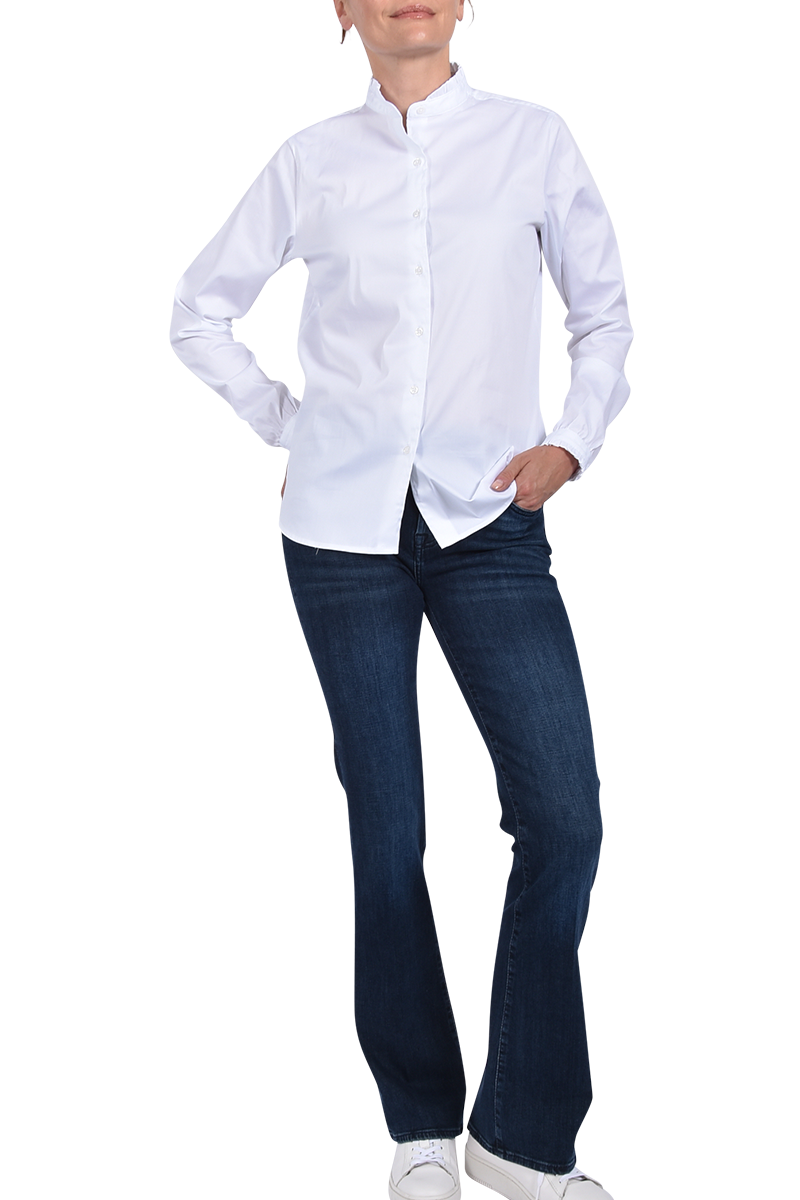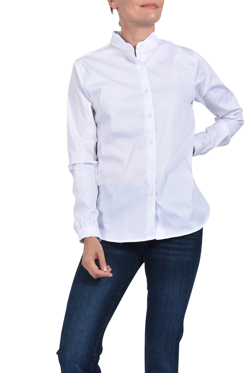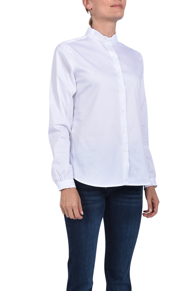 - Stehkragen mit Rüschensaum,
