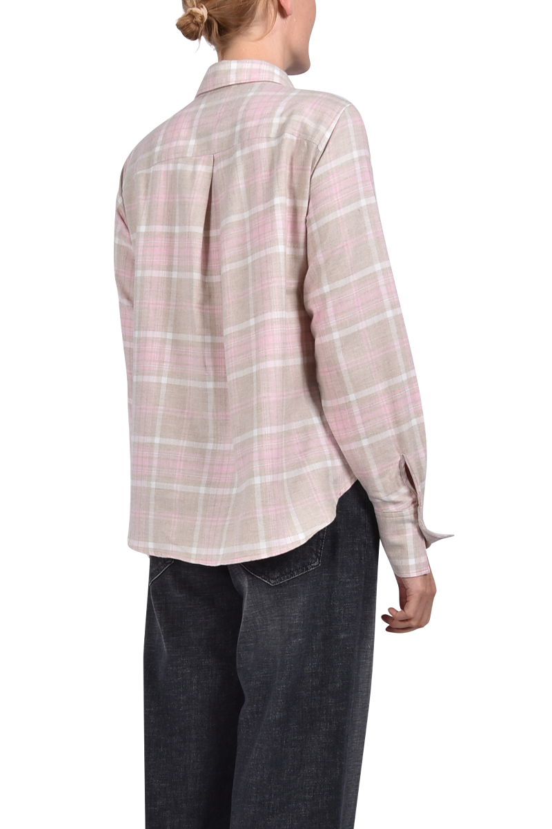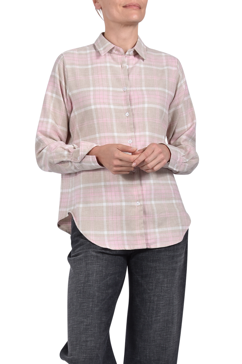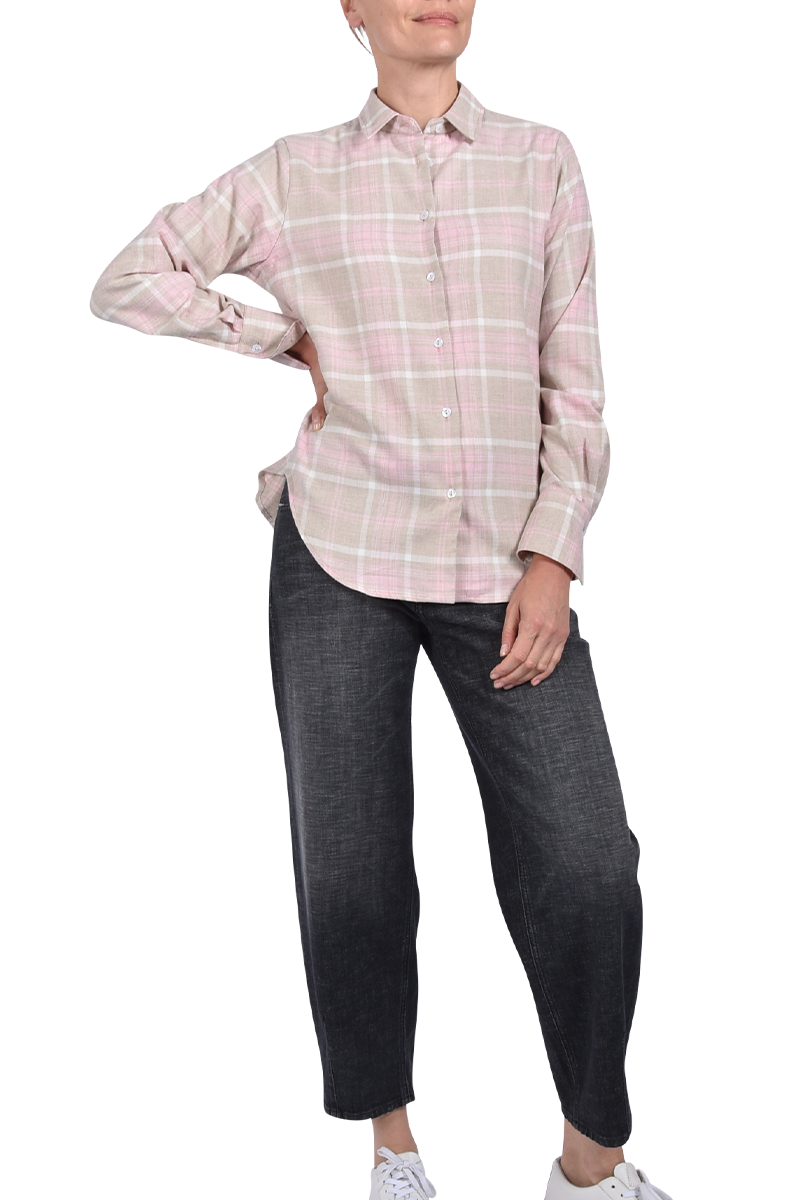 Klassisch mit Twist: Seitlich abgerundet, mit markanter Kellerfalte und extra langen Manschetten. Das Flanell-Karo sorgt für eine frische, zeitlose Note.