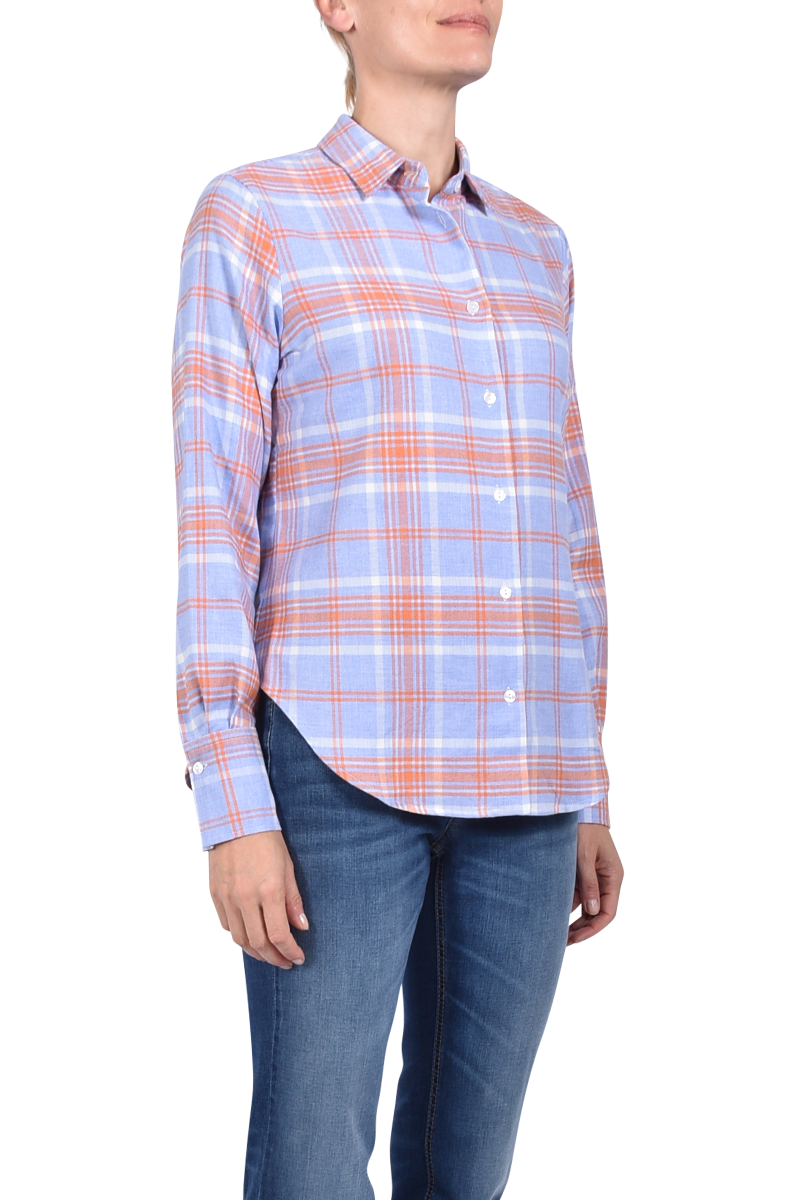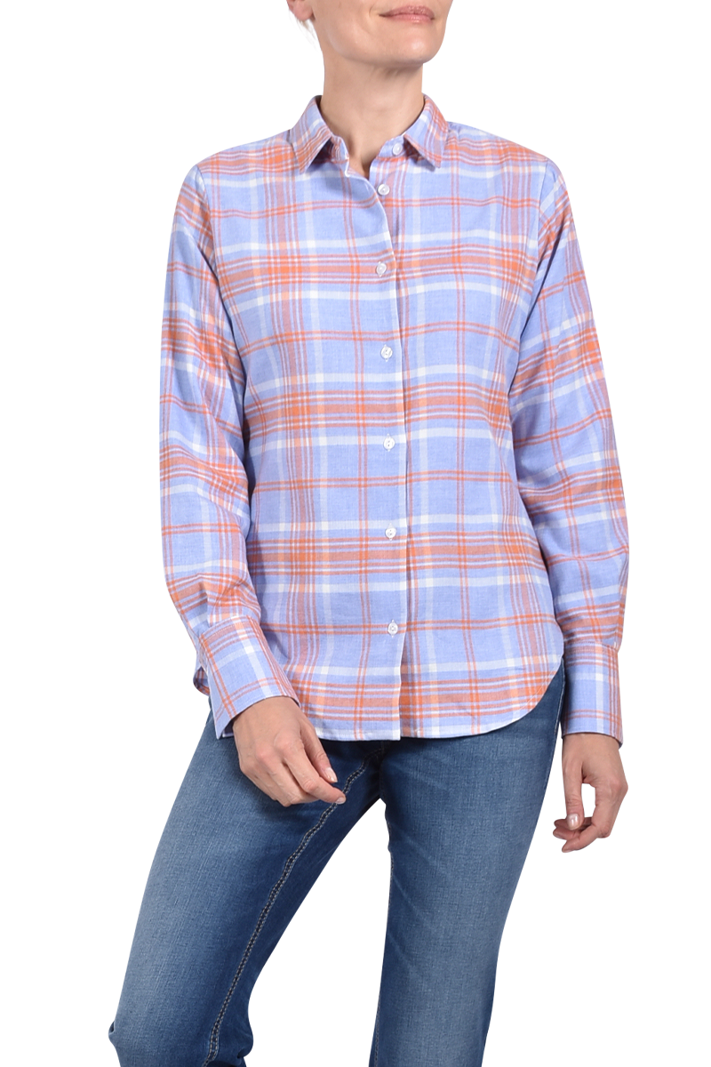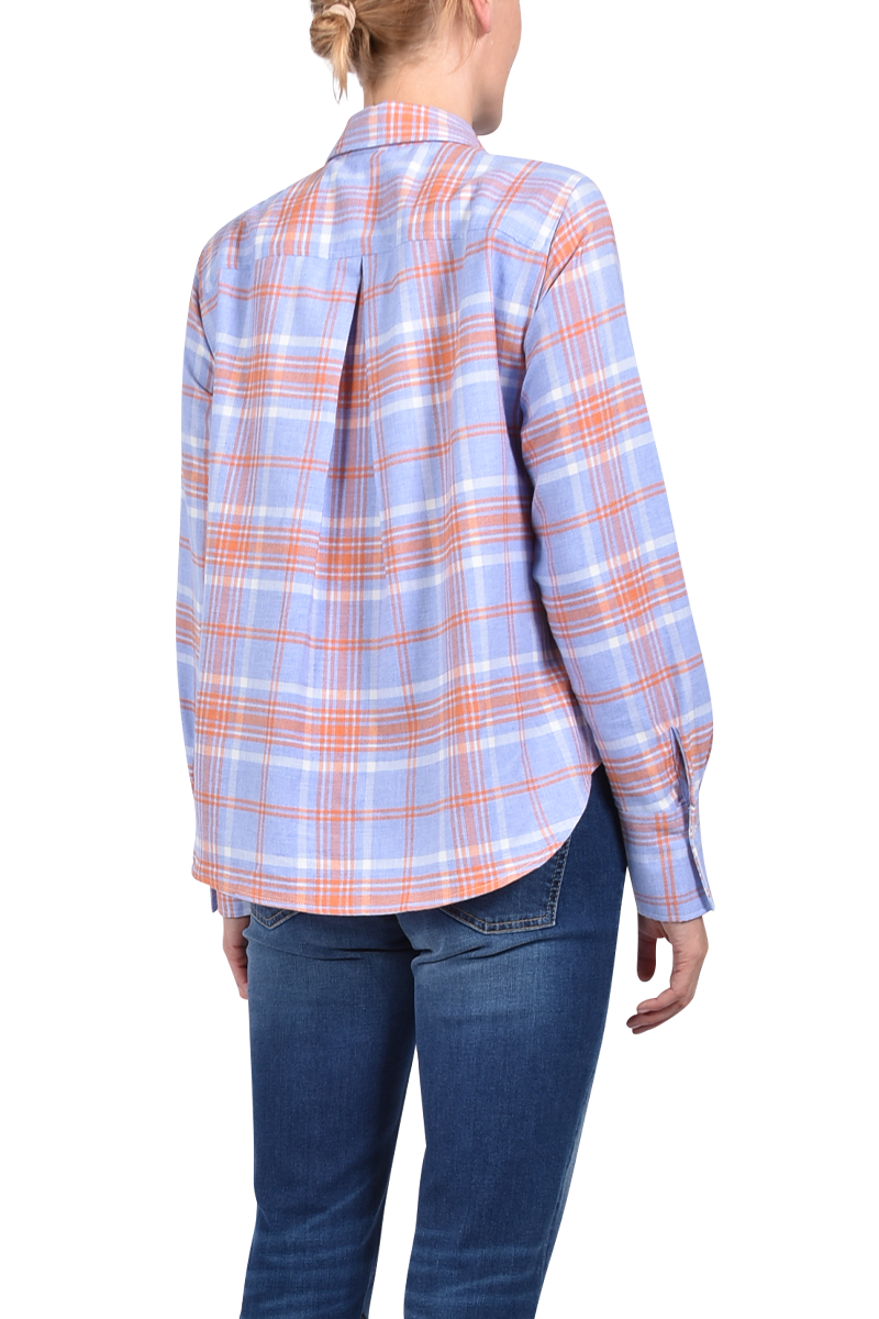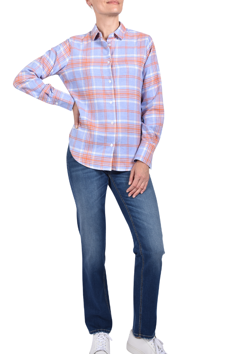 Klassisch mit Twist: Seitlich abgerundet, mit markanter Kellerfalte und extra langen Manschetten. Das Flanell-Karo sorgt für eine frische, zeitlose Note.