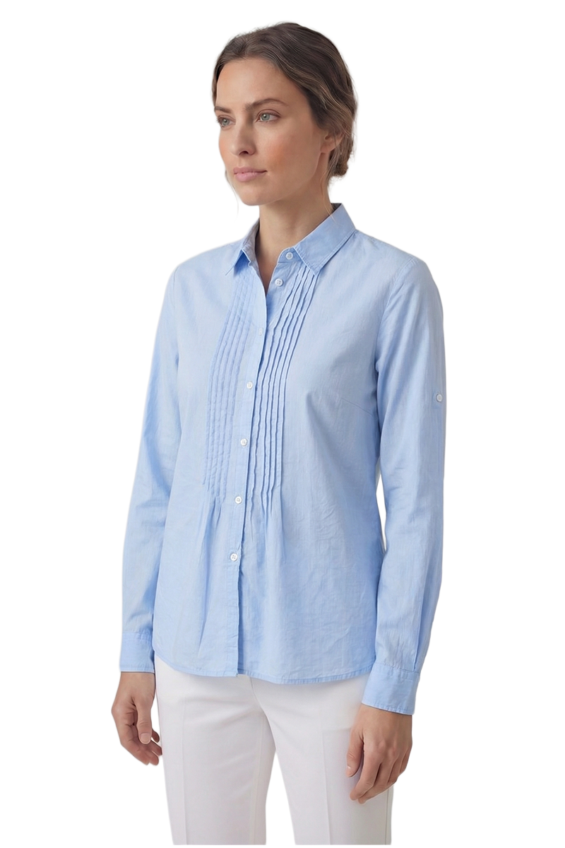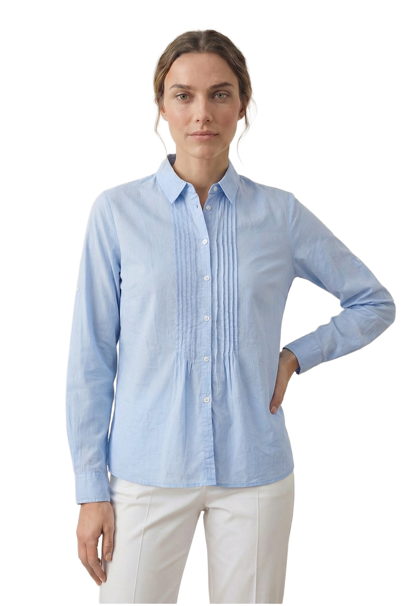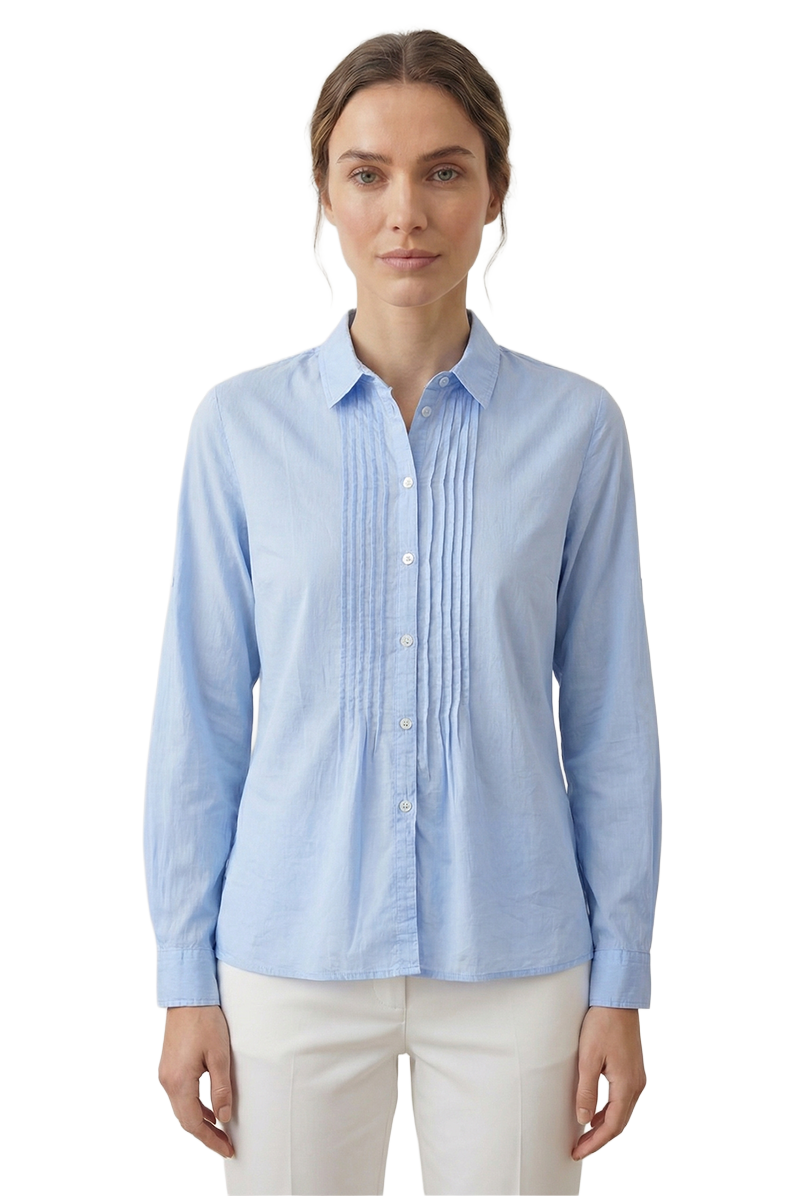 Leichte Bluse aus 100% Baumwolle im luftigen Musselin, mit Hemdkragen, feinen Biesen im Vorderteil und krempelbaren ?rmeln ? feminin und bequem.