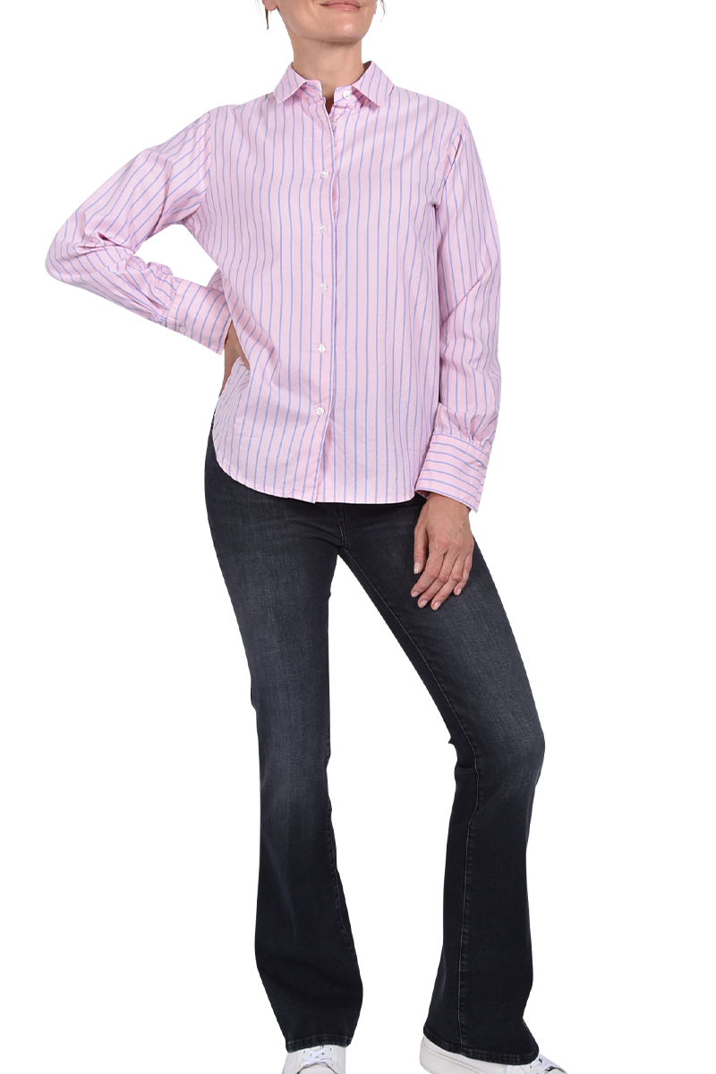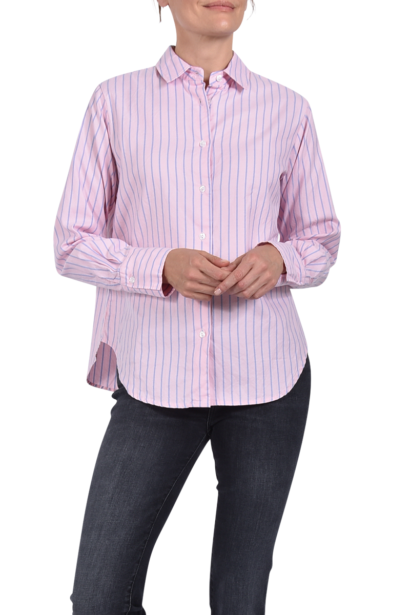 Klassisch mit Twist: Seitlich abgerundet, mit markanter Kellerfalte und extra langen Manschetten. Die Oxfordstreifen sorgen für eine frische, zeitlose Note.