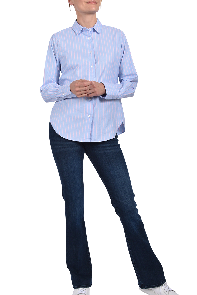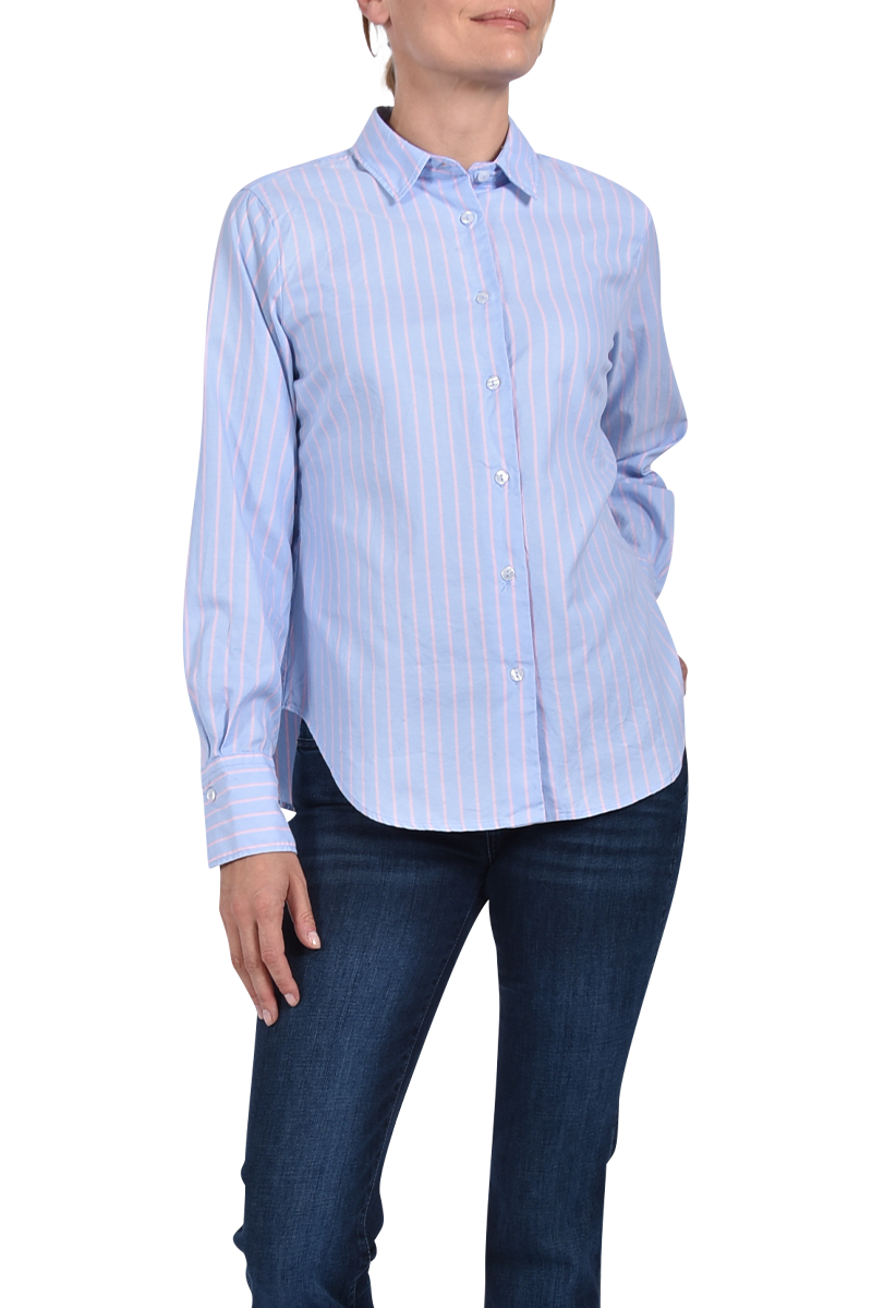 Klassisch mit Twist: Seitlich abgerundet, mit markanter Kellerfalte und extra langen Manschetten. Die Oxfordstreifen sorgen für eine frische, zeitlose Note.