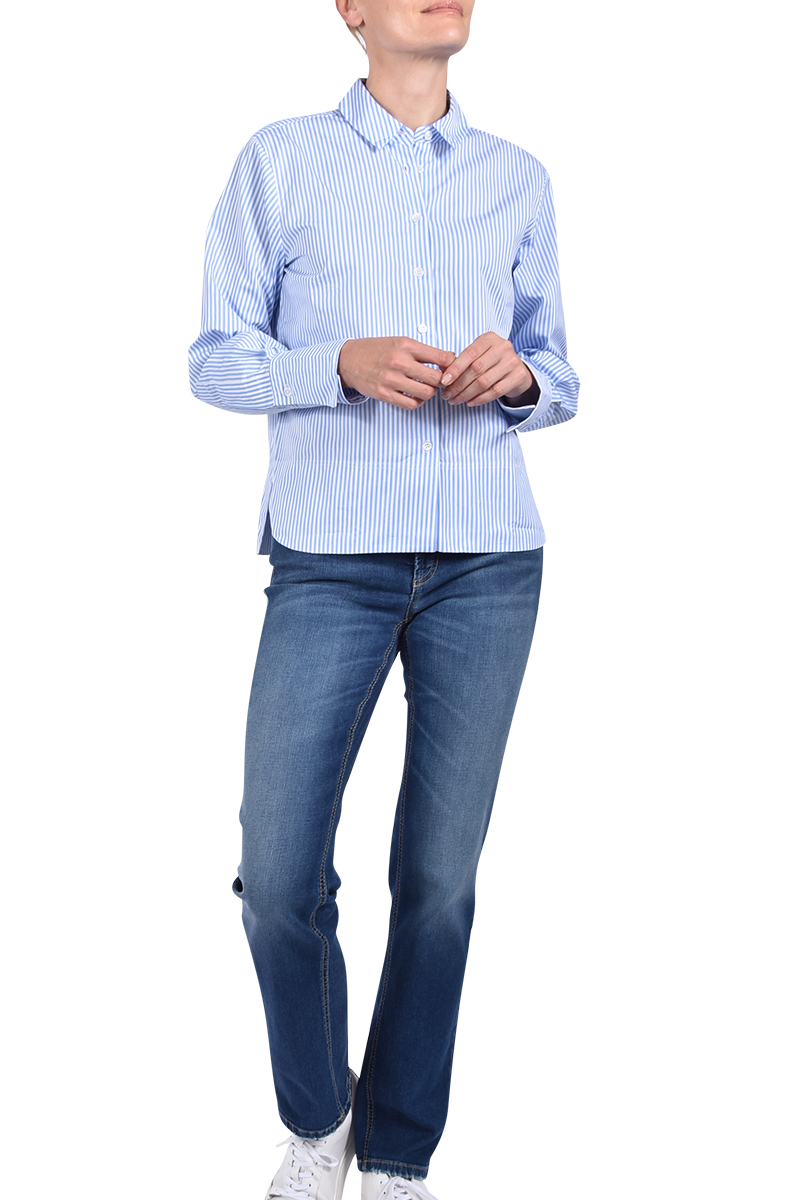 Klassisch und doch besonders: Die gestreifte Bluse aus 100% Baumwolle besticht mit feinen Römerstreifen, langen Manschetten und einem abgerundeten Saum mit Seitenschlitzen ? für einen gepflegt lässigen Look.