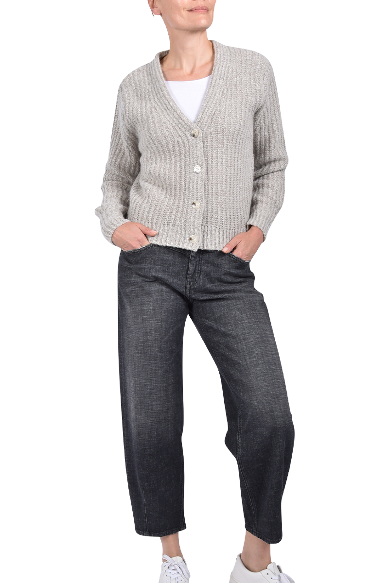 Cardigan in Rippenstrick aus Merino-Kaschmir.