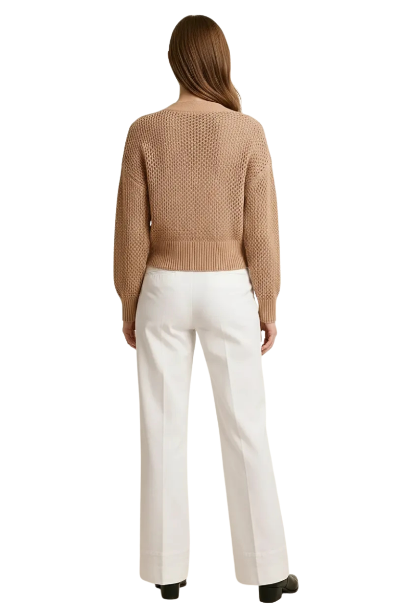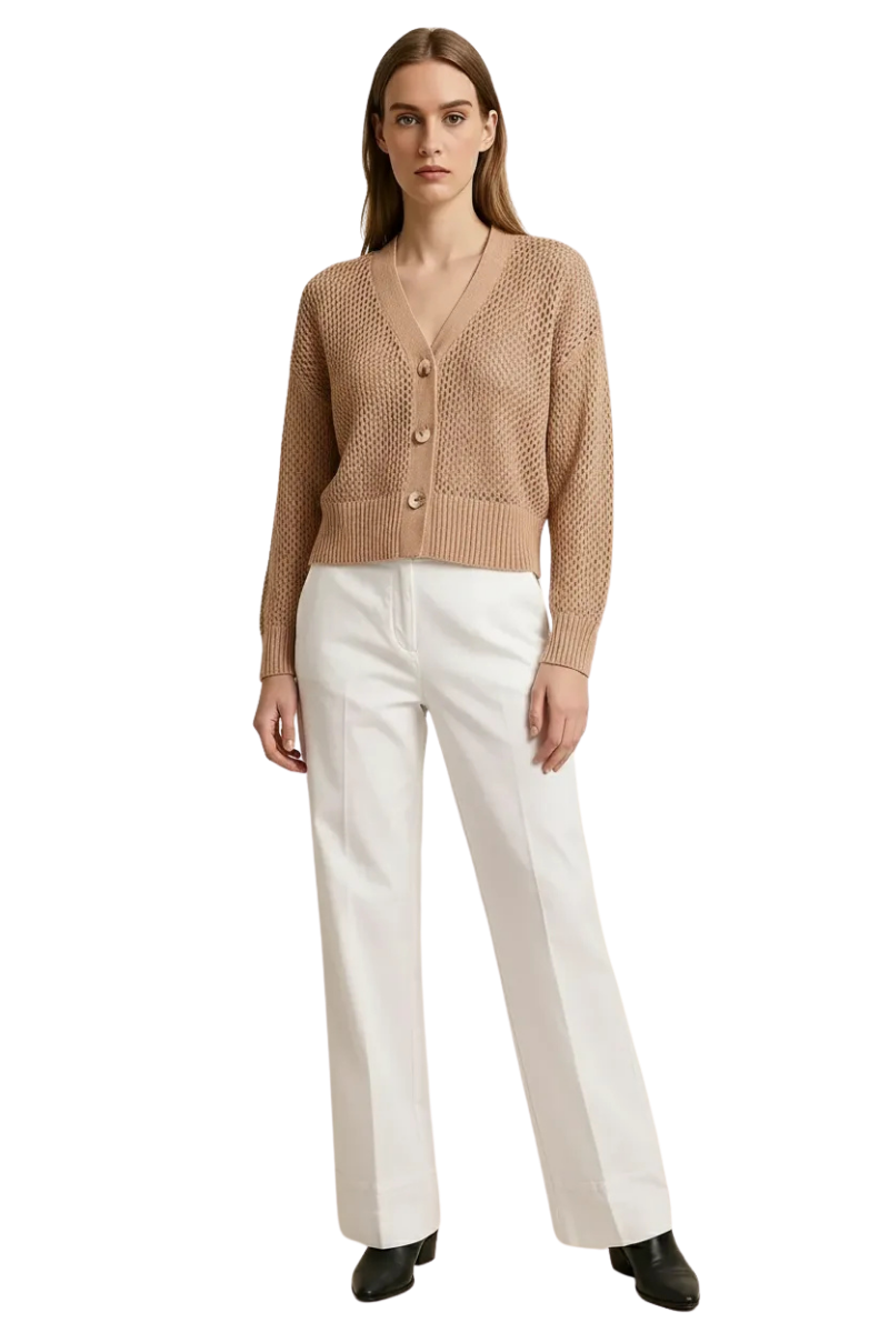 Cardigan mit Lochstrick und 3 Knöpfen.