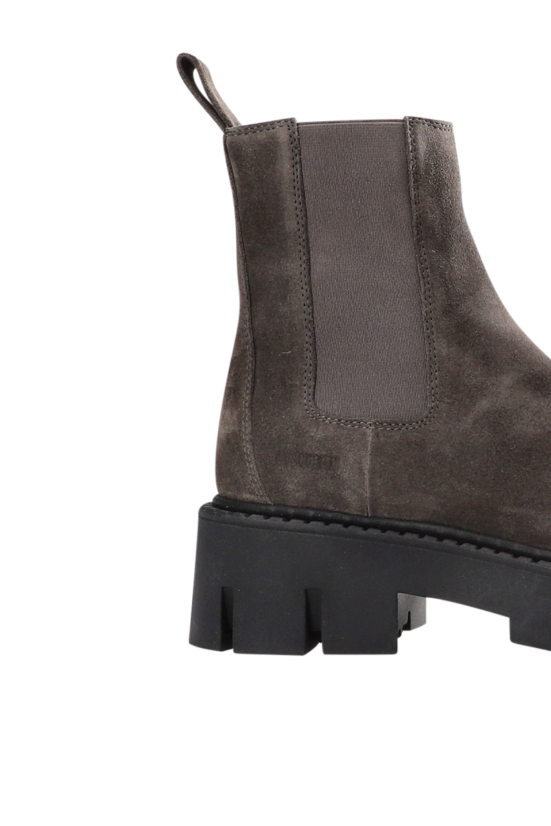 Knöchelhohe Chelsea-Silhouette. Runde Kappe. Elastische Seiteneinsätze. Zugschlaufe am Schaft. Gestanztes Logo an der Außenseite. Ein ausdrucksstarker und zugleich minimalistischer Style.