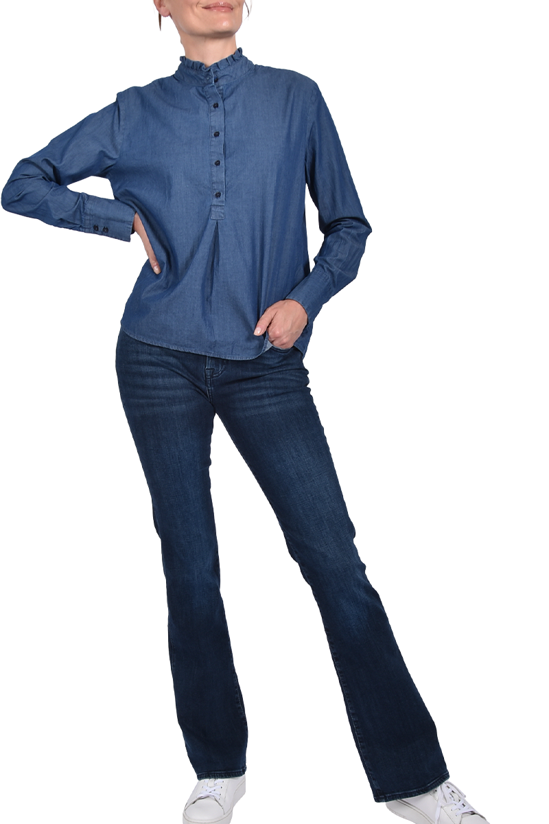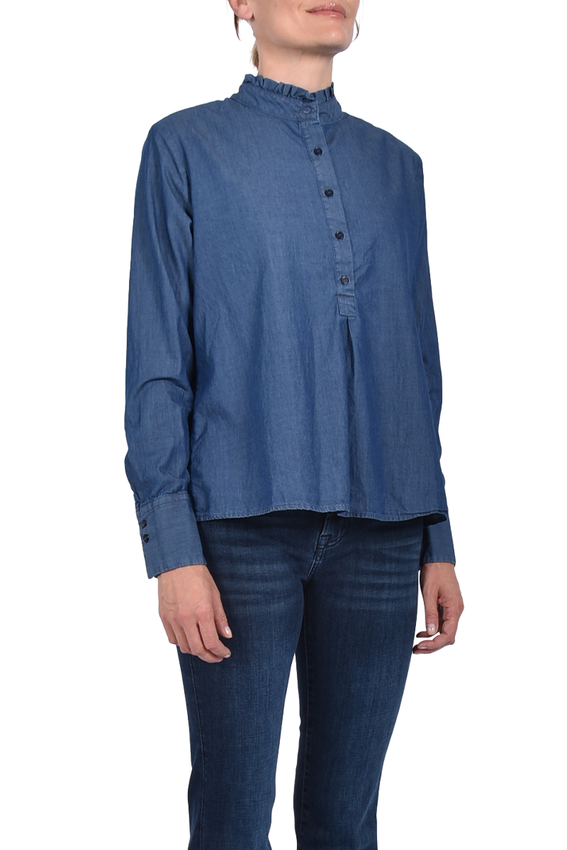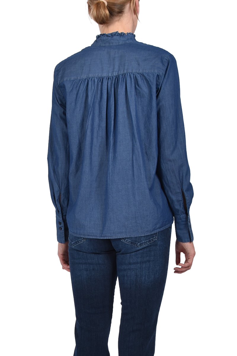 Denim-Bluse mit Rüsche.