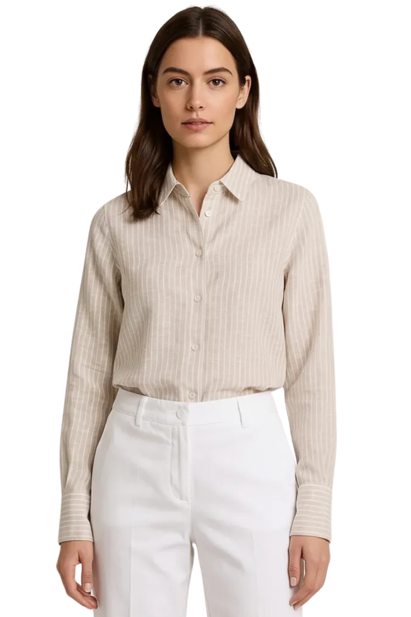 Luftige Bluse mit zeitlosem Streifenmuster aus reinem Leinen mit abgerundetem Saum und langen Manschetten. Ein Sommerbasic mit Stil.