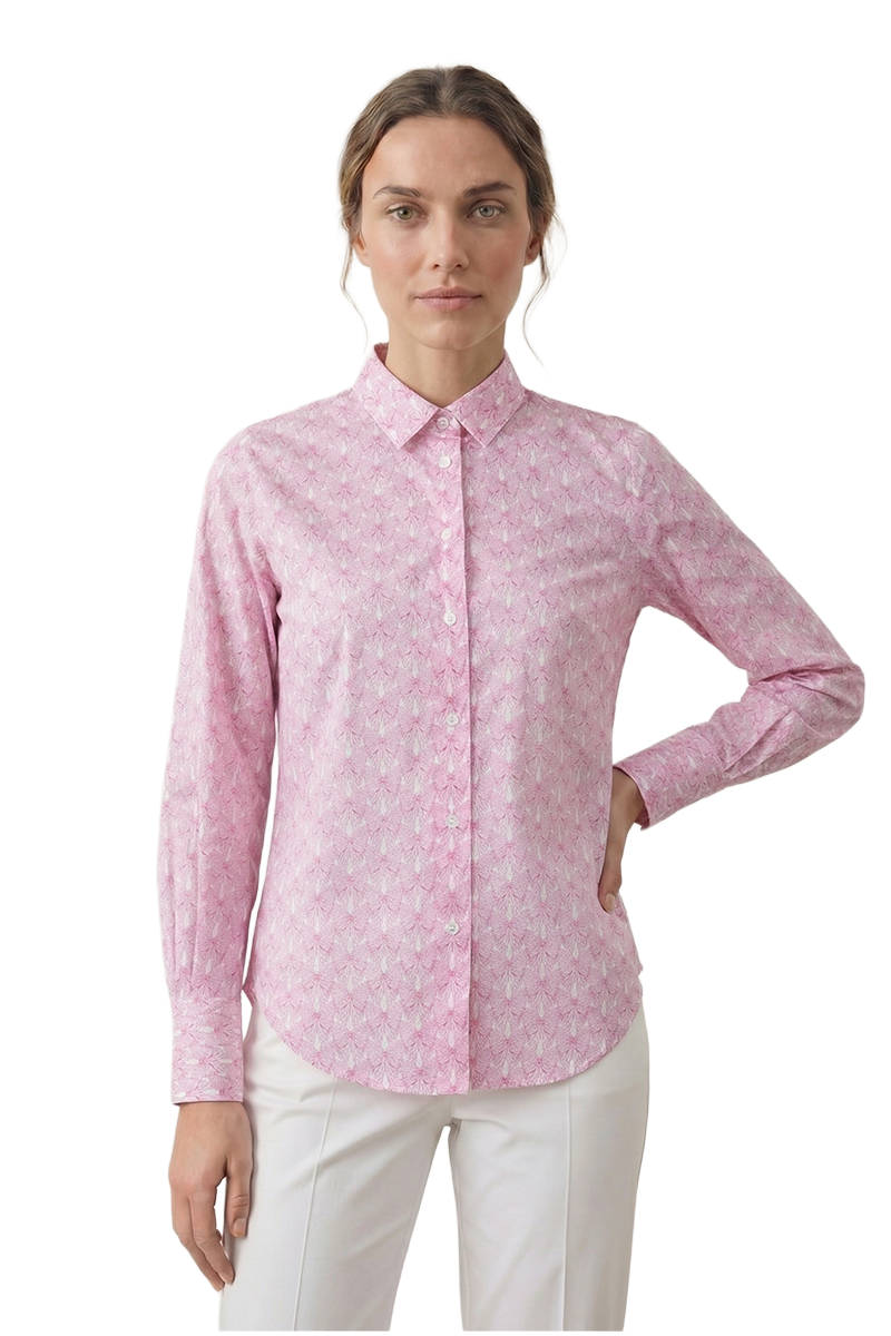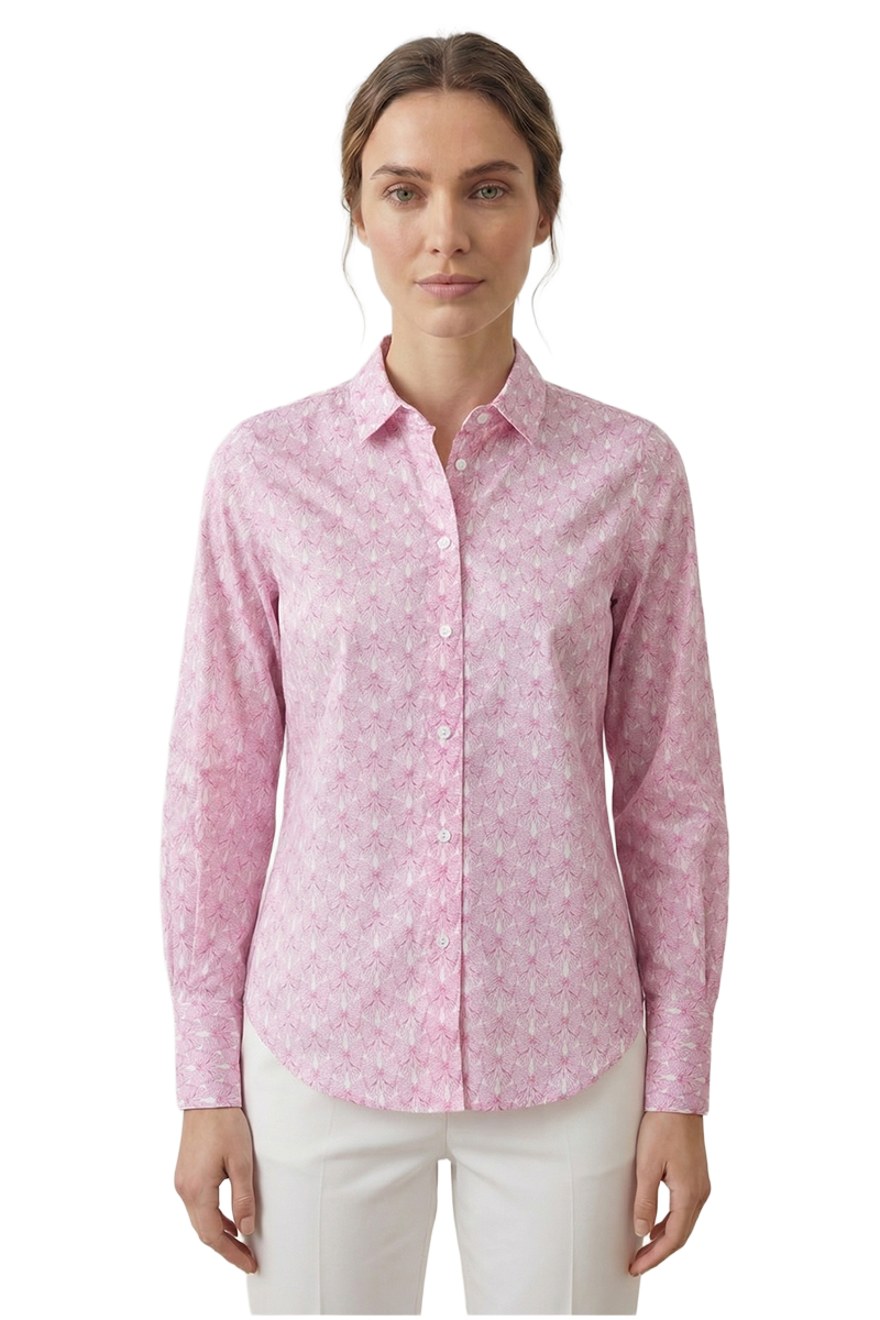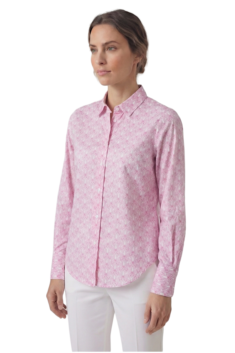 Feine Baumwollbluse mit verspieltem Schleifenmuster von Liberty. Die eingelegte R?ckenfalte sorgt f?r eine weiche, flie?ende Silhouette.