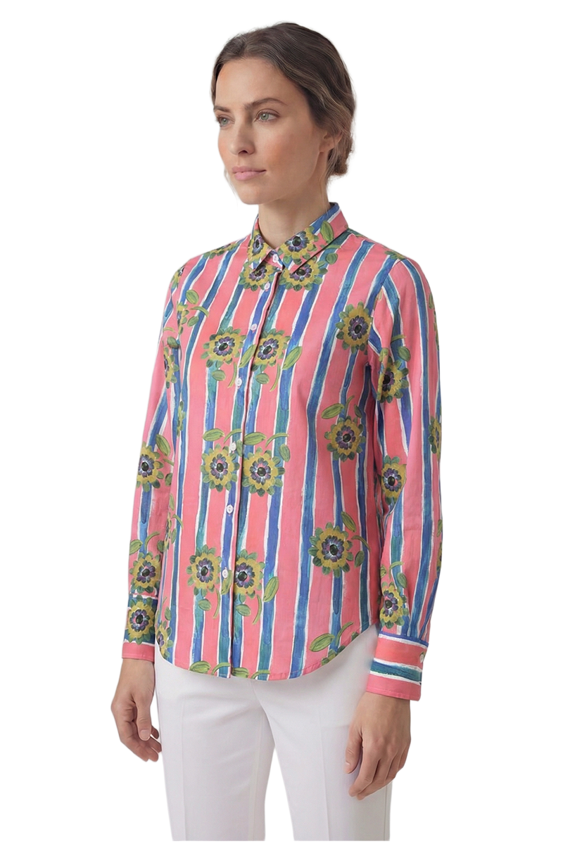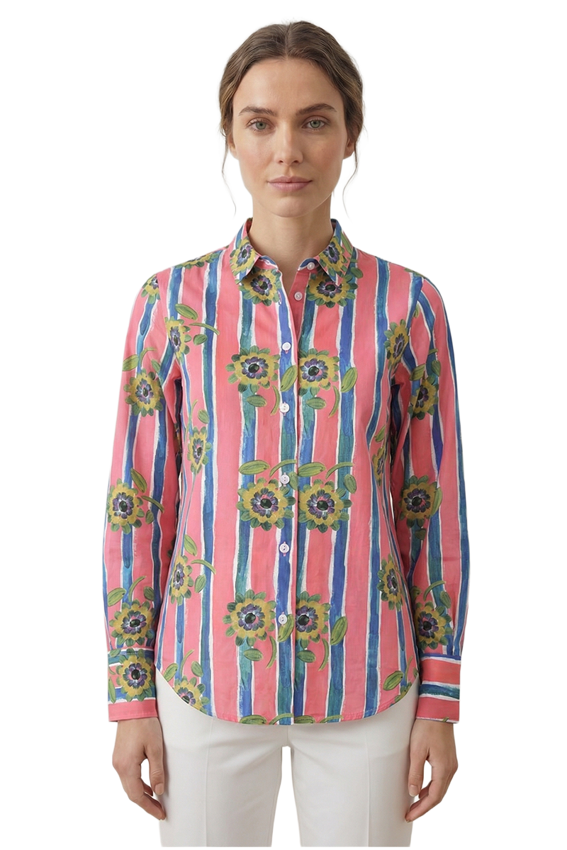 Hemdbluse aus feiner Baumwolle mit grafischem Streifen-Blumen-Mix von Liberty. Die eingelegte R?ckenfalte sorgt f?r einen entspannten Fall.