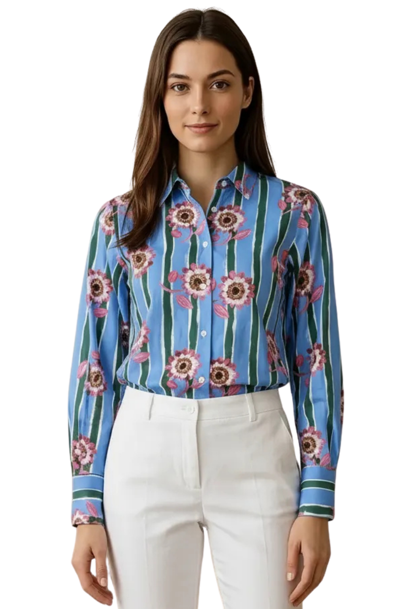 Hemdbluse aus feiner Baumwolle mit grafischem Streifen-Blumen-Mix von Liberty. Die eingelegte R?ckenfalte sorgt f?r einen entspannten Fall.