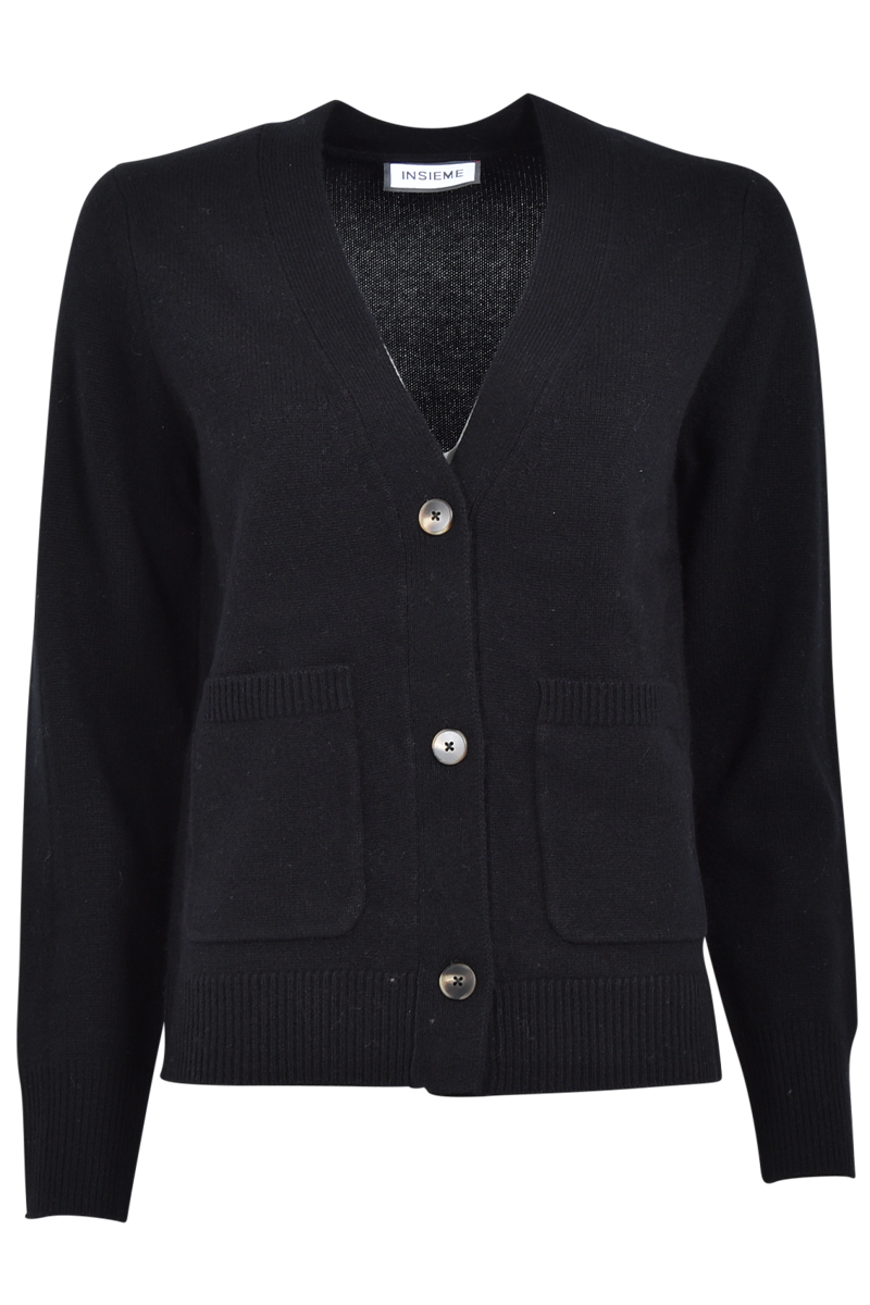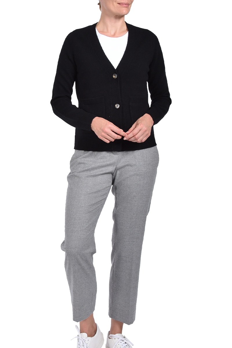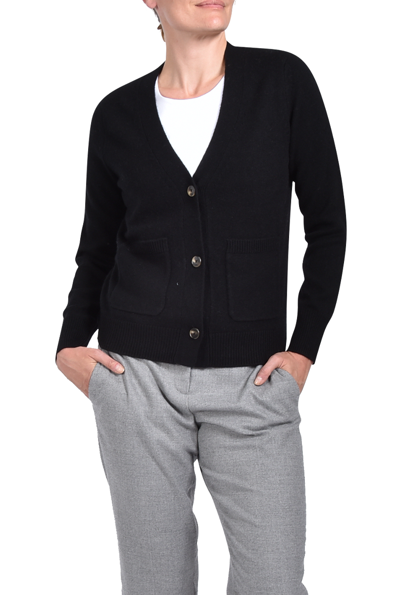 Lässig geschnittene Strickjacke mit zwei aufgesetzten Taschen.