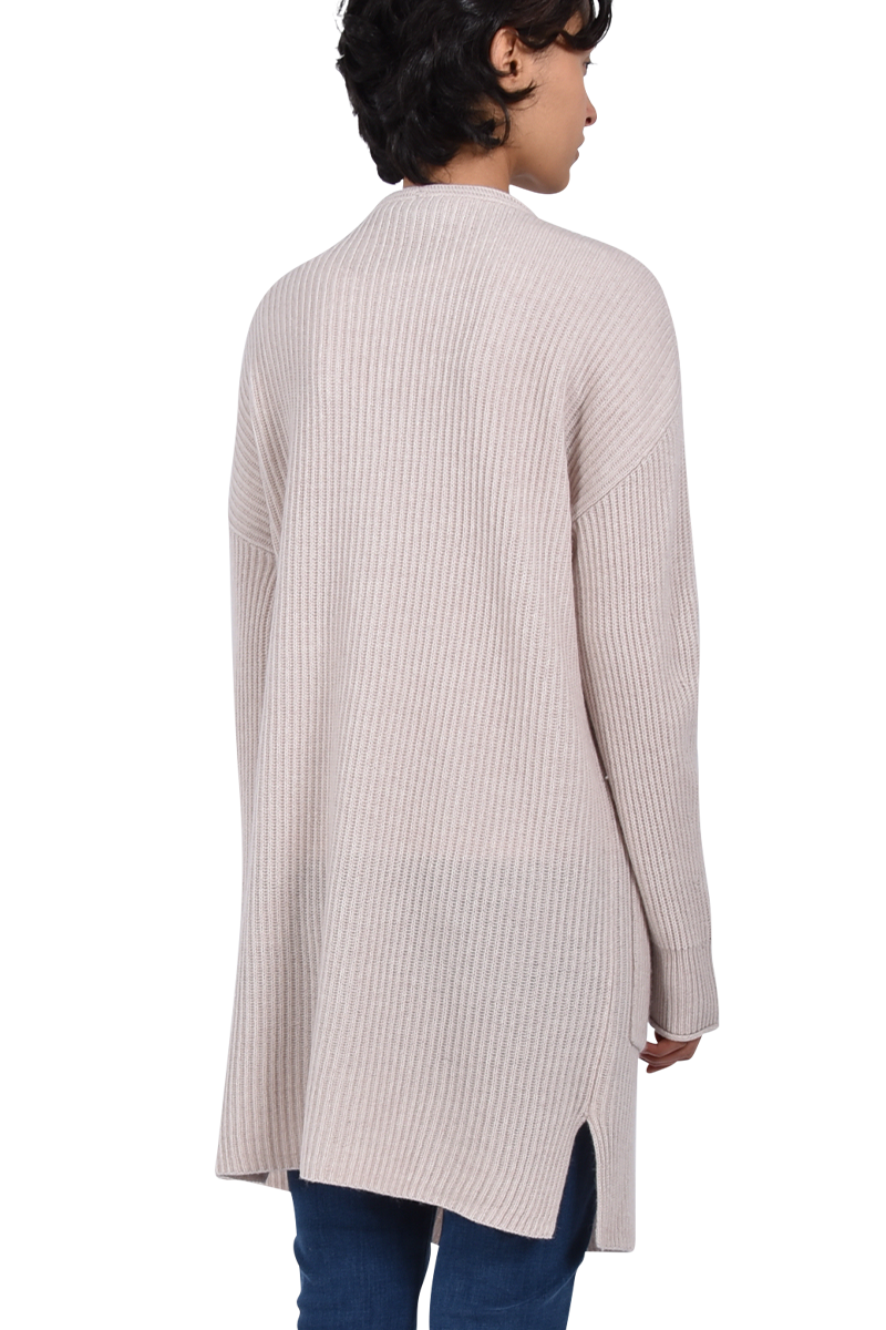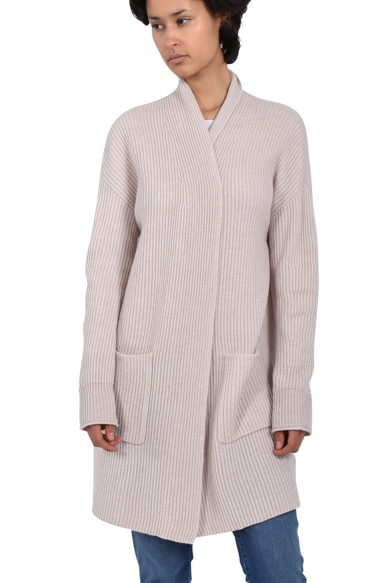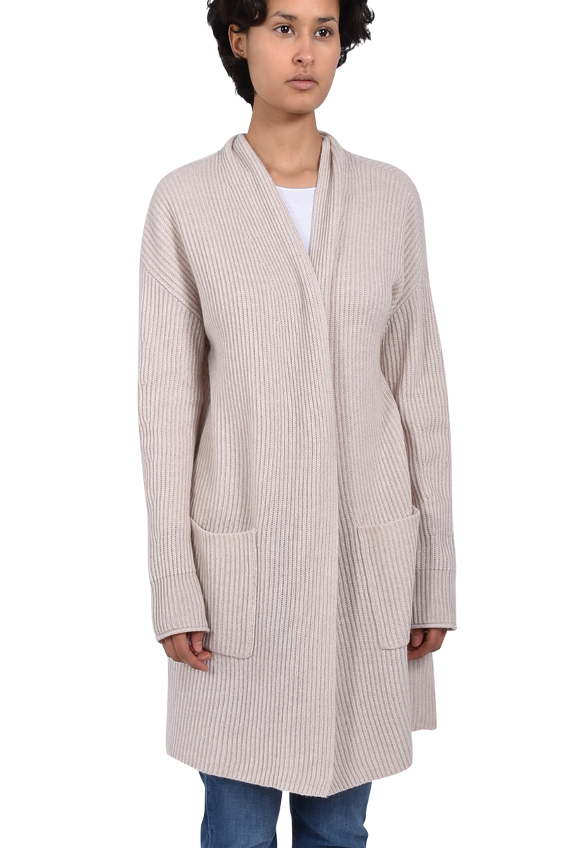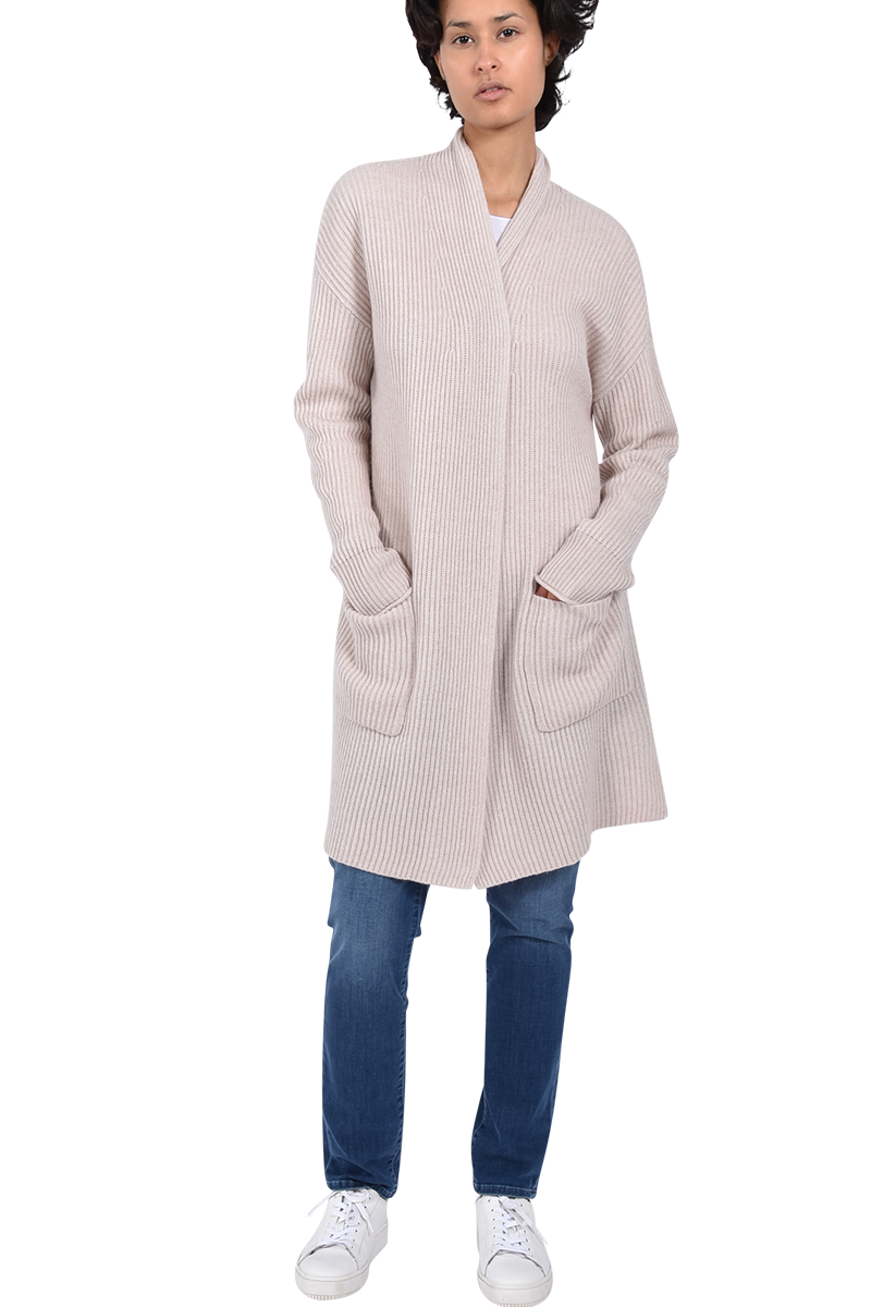 Diese lange Strickjacke ist ein absoluter Hingucker, dank ihres Rippstricks. Die besondere Länge lässt die Strickjacke zu einem Must-Have werden.
