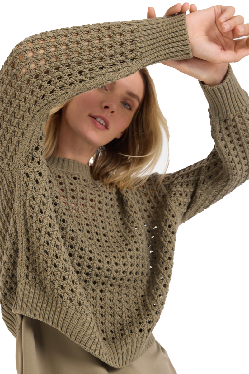 Lochstrick-Pullover.