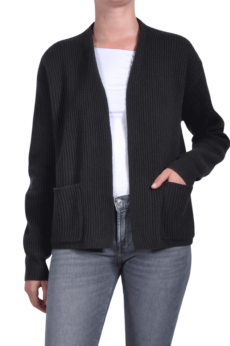 Diese Cashmere-Jacke ist ein absolutes Must-Have. Ideal um sich vor einer frischen Briese zu schützen. Der besondere Rippstrick und die zwei aufgesetzten Taschen geben der Jacke das gewisse Extra.