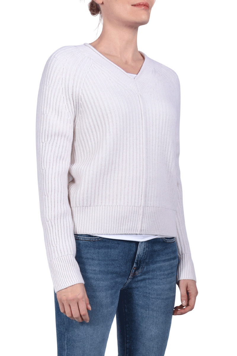Besonderer V-Ausschnitt Pullover aus Cashmere- und Wollmix.