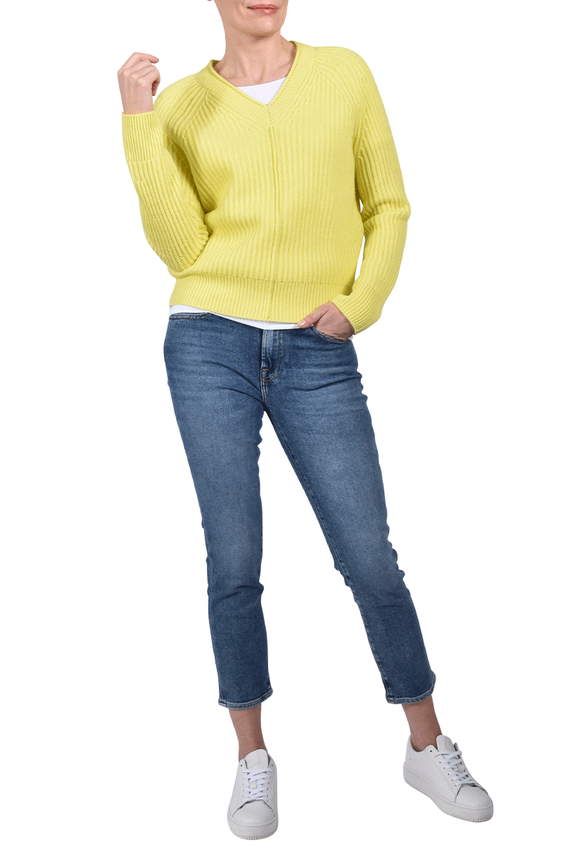 Besonderer V-Ausschnitt Pullover aus Cashmere- und Wollmix.