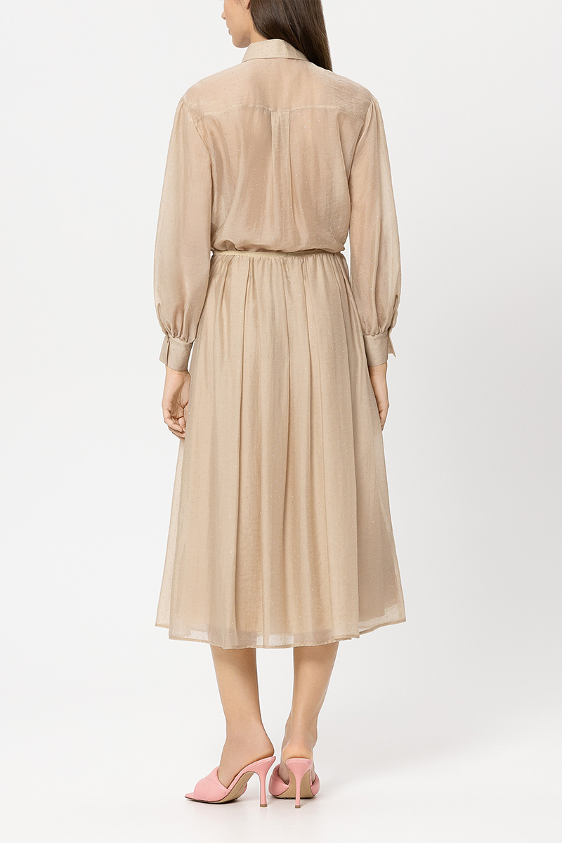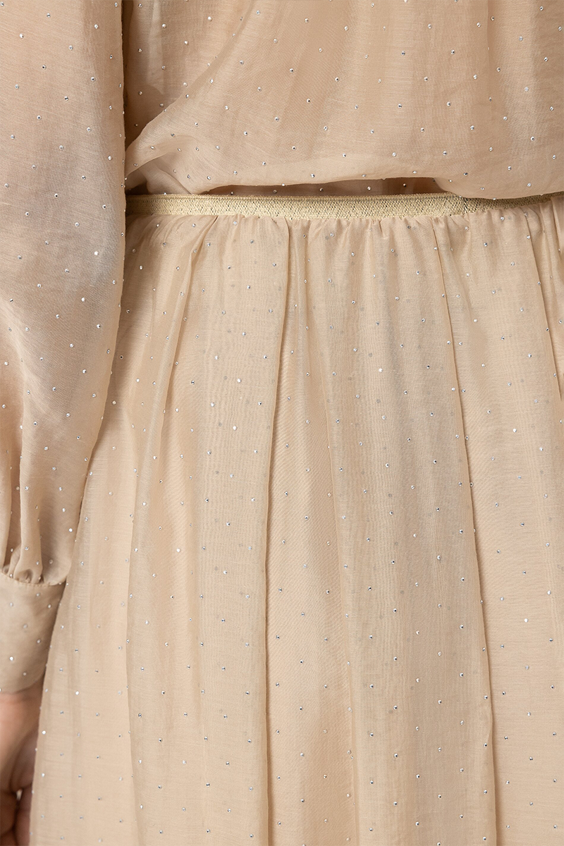 Langer, weiter Rock aus einer semitransparenten Material mit Glitzersteinen.