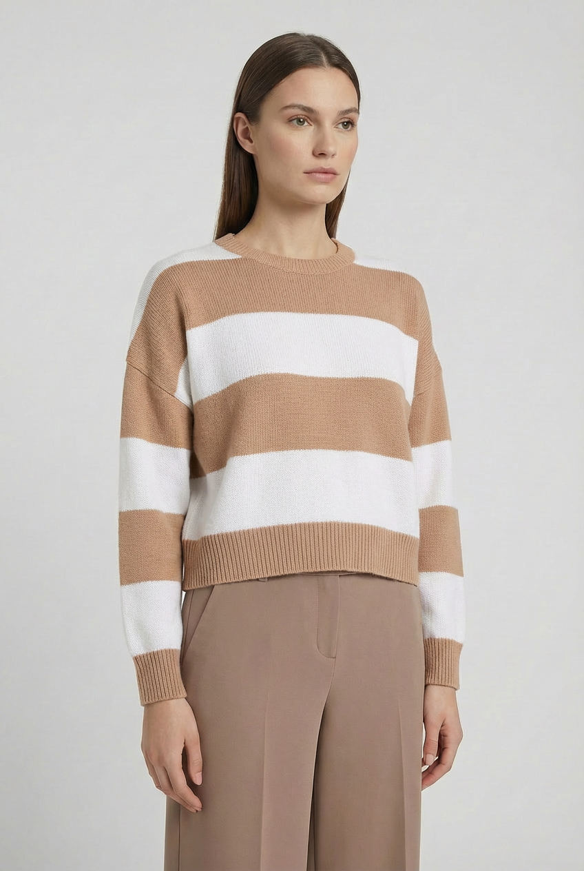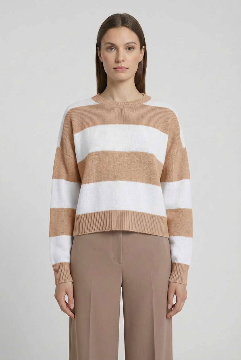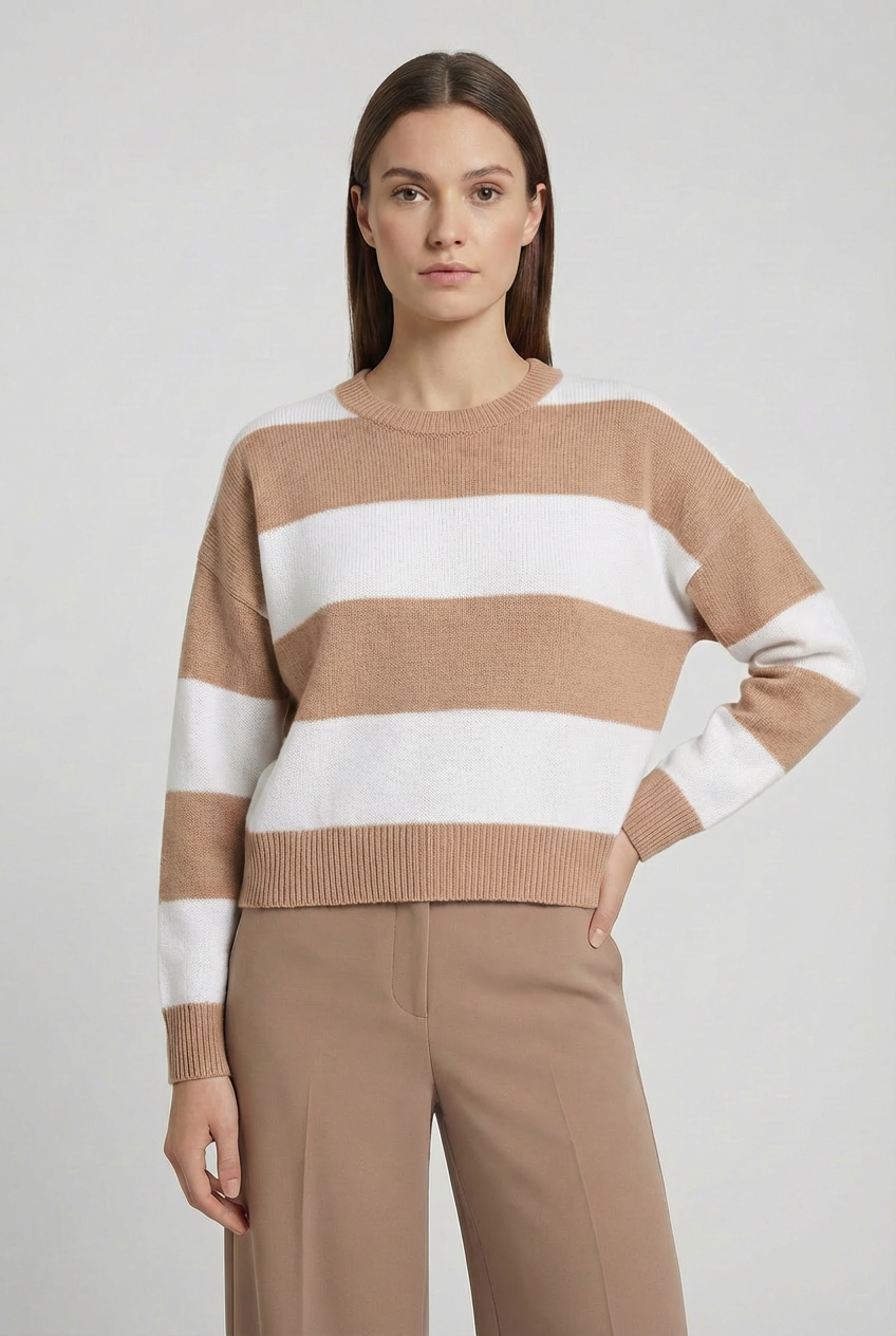 Gerade geschnittener Pullover mit Rundhalsausschnitt und markanten breiten Abschl?ssen. Der luxuri?se Mix aus Wolle und Kaschmir sorgt f?r weichen Griff und angenehmen Tragekomfort.