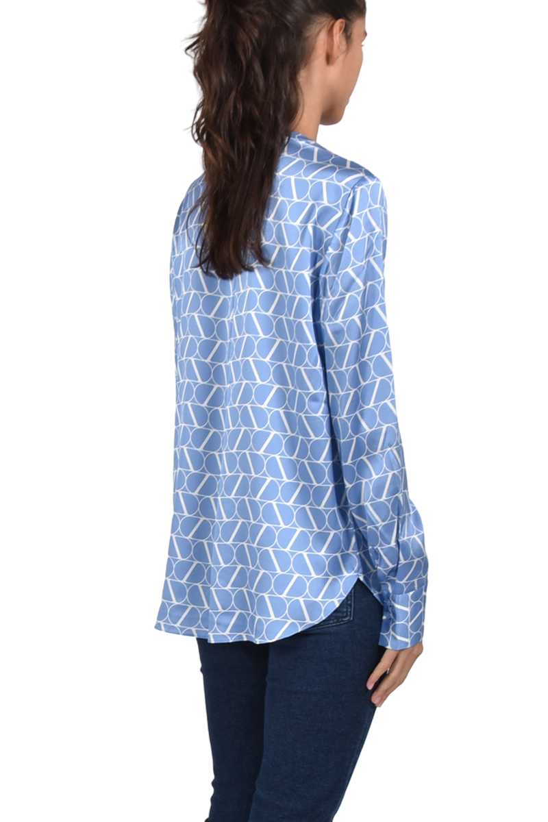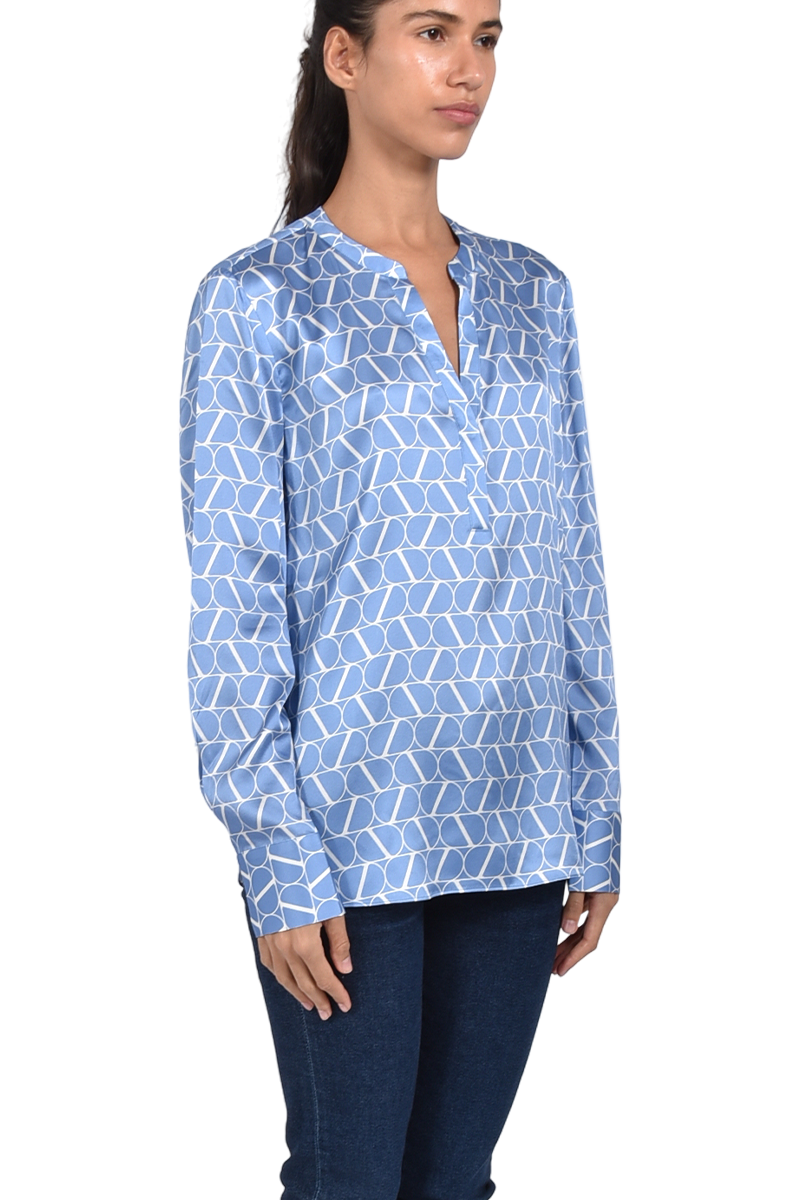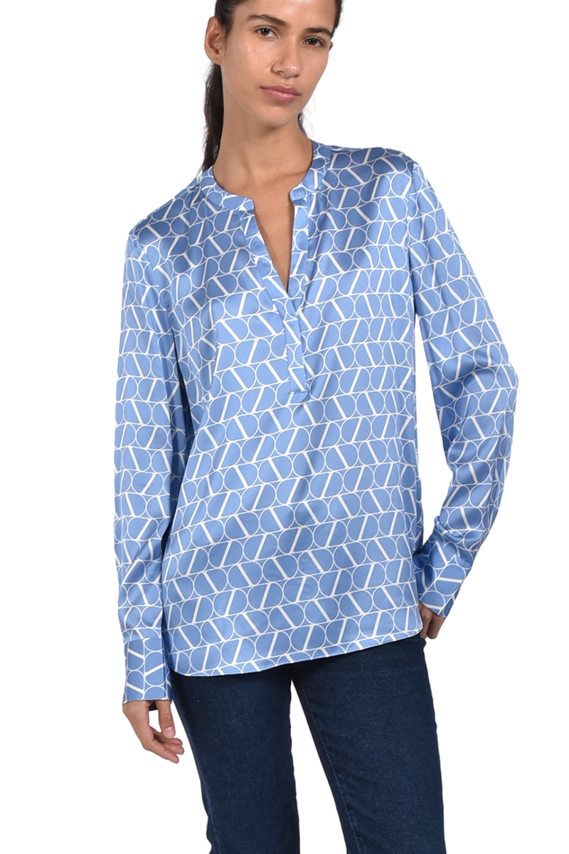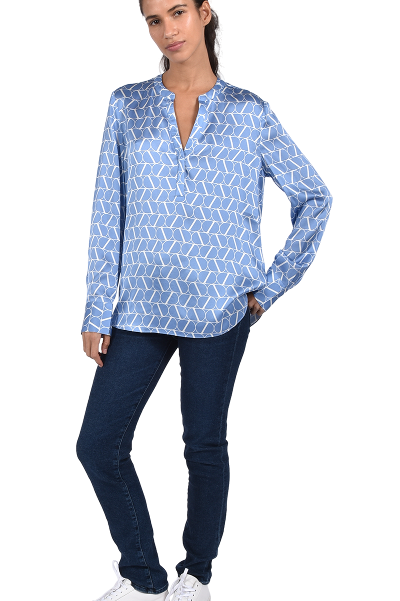 Hochwertige Seidenbluse mit V-Ausschnitt und Logoprint.