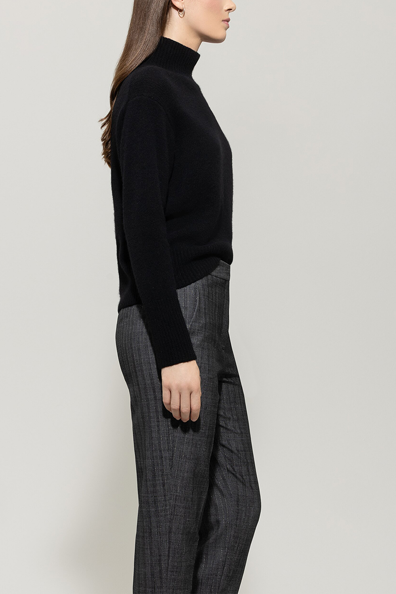 Kürzer geschnittener Pullover aus edlem Kaschmir-Mix in kastenförmiger Silhouette. Der angeschnittene Kragen, die Ärmelabschlüsse und die Saumkante zeigen breite Rippstrick-Bündchen.