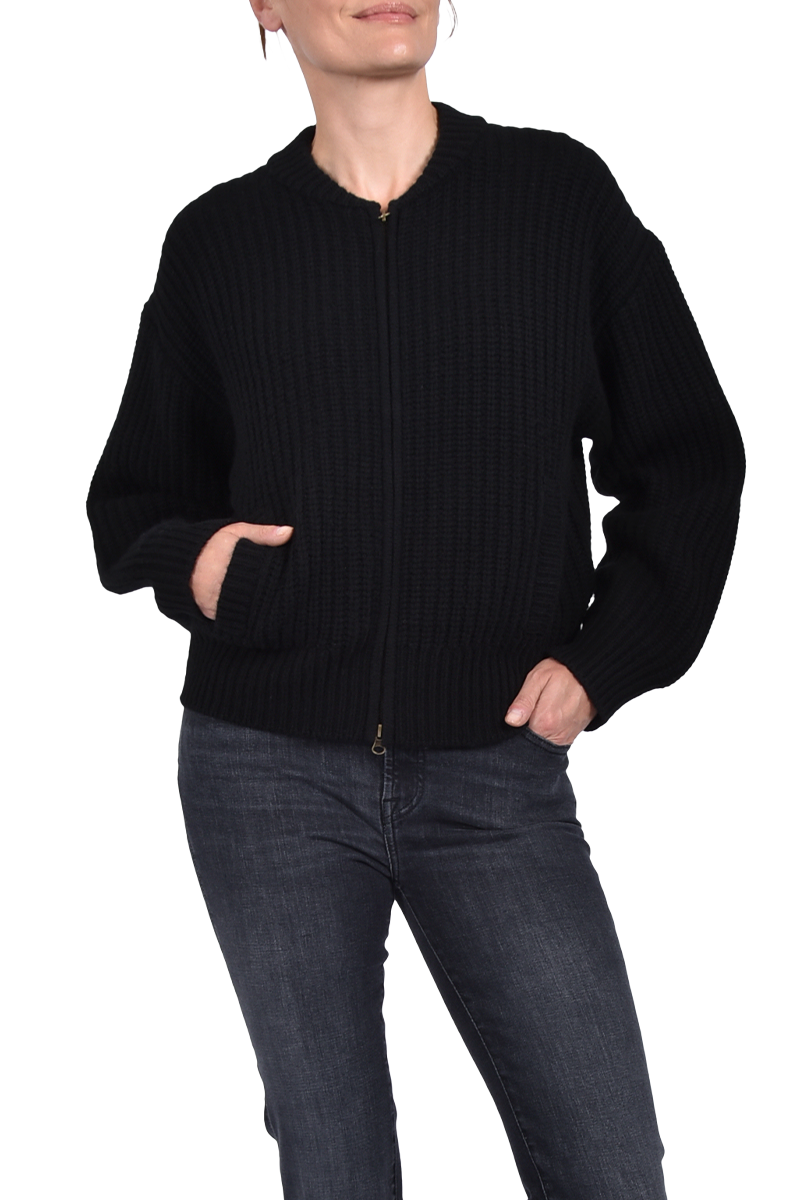 Strickblouson aus Wolle-Kaschmir in Patentstrick.