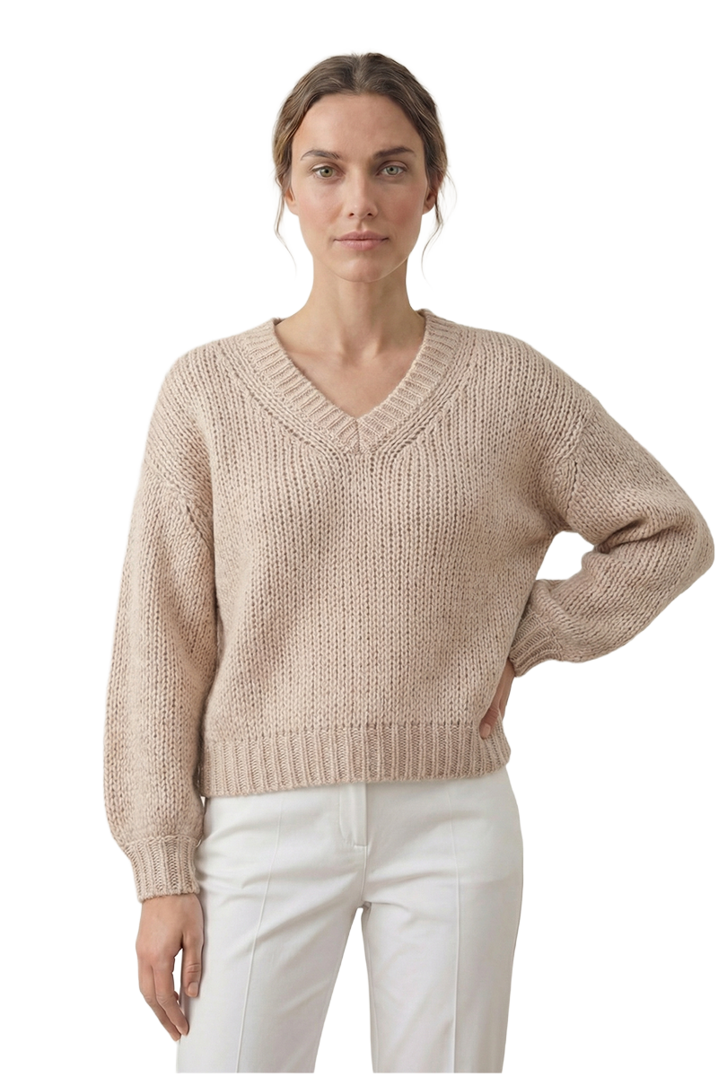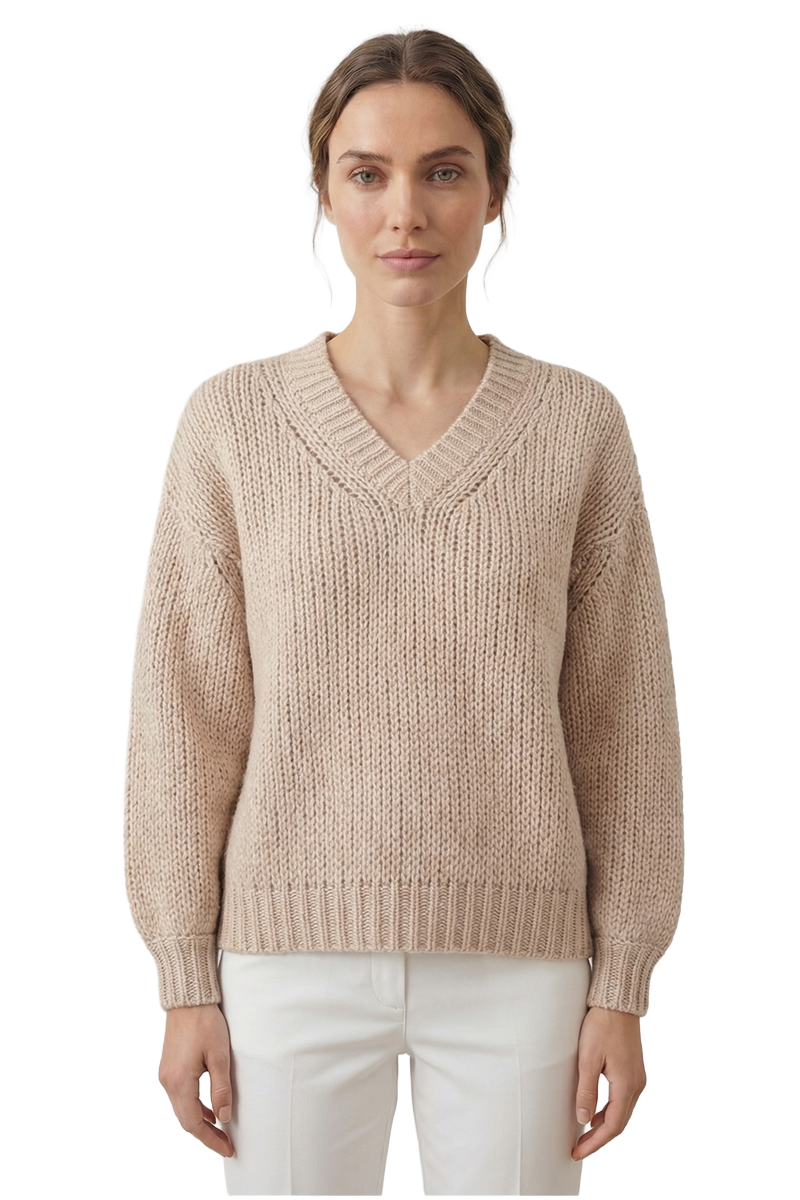V-Ausschnitt-Pullover mit markanten Abschlüssen.